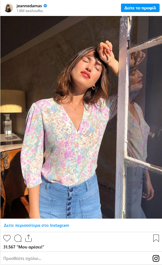 Αν δεν σου αρέσουν τα φλοράλ μοτίβα, εμπνεύσου από το look μιας άλλης Γαλλίδας it-girl. Η Julie Ferreri επέλεξε ένα λευκό πουκάμισο με φιόγκο, με το οποίο φόρεσε μια τουίντ φούστα που είναι πολύ της μόδας αυτή τη σεζόν. Το όμορφο συμπλήρωμα του ρομαντικού συνόλου της Γαλλίδας είναι οι γοητευτικές κάλτσες με βολάν. Μπορείς να αναδημιουργήσεις το look της ή να δημιουργήσεις τη δική σου έκδοση – ένα πουκάμισο και μια ψηλόμεση φούστα είναι πάντα ένας υπέροχος συνδυασμός, ιδανικός και για ένα ρομαντικό ραντεβού!
