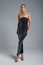 Φόρεμα Στράπλες Maxi με Στρας & Εφαρμοστή Γραμμή