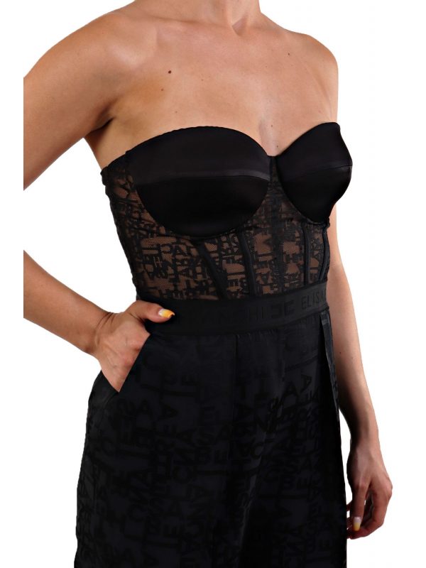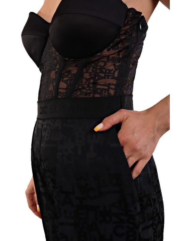 ELISABETTA FRANCHI ΟΛΟΣΩΜΗ ΦΟΡΜΑ ΚΟΡΣΕΣ ΔΑΝΤΕΛΑ LOGO ΜΑΥΡΟΣΥΝΘΕΣΗ: 100% ΝΑΥΛΟΝ