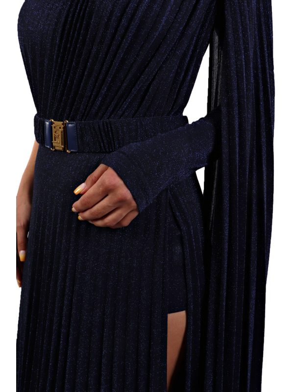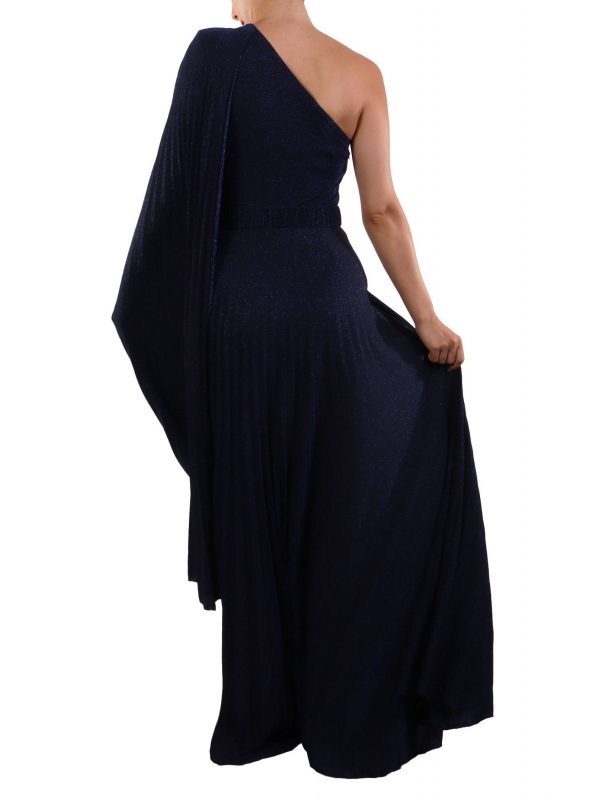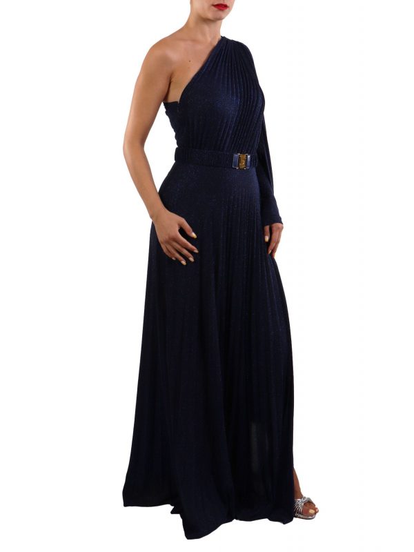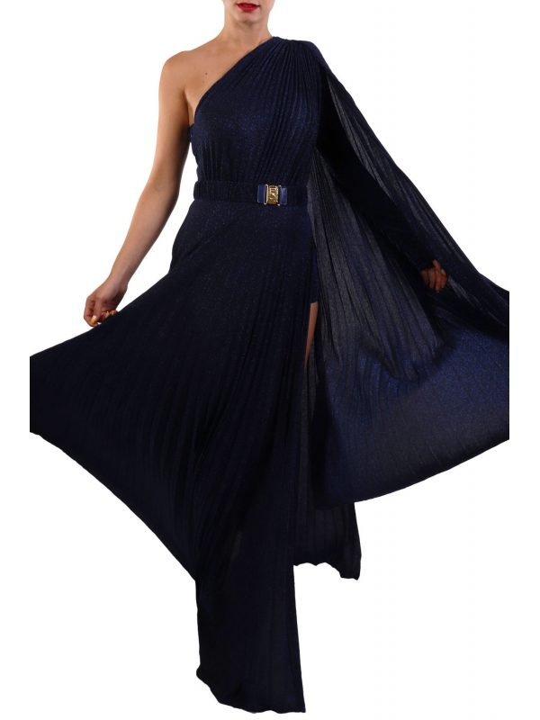 ELISABETTA FRANCHI ΦΟΡΕΜΑ RED CARPET MAXI ΠΛΙΣΕ ΑΝΟΙΓΜΑ ΚΑΤΩ ΕΝΑΣ ΩΜΟΣ ΜΠΛΕ