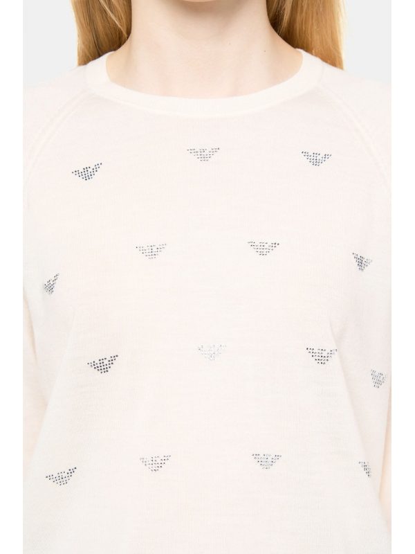 EMPORIO ARMANI ΜΠΛΟΥΖΑ ΛΑΙΜΟΚΟΨΗ LOGO STRASS ΕΚΡΟΥΣΥΝΘΕΣΗ: 100% ΠΑΡΘΕΝΟ ΜΑΛΛΙ100% VIRGIN WOOL