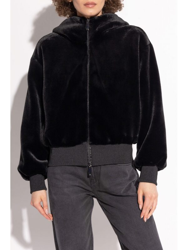 EMPORIO ARMANI ΜΠΟΥΦΑΝ BOMBER FAUX FUR ΔΙΠΛΗΣ ΟΨΕΩΣ ΜΗ ΑΠΟΣΠΩΜΕΝΗ ΚΟΥΚΟΥΛΑ ΜΑΥΡΟ