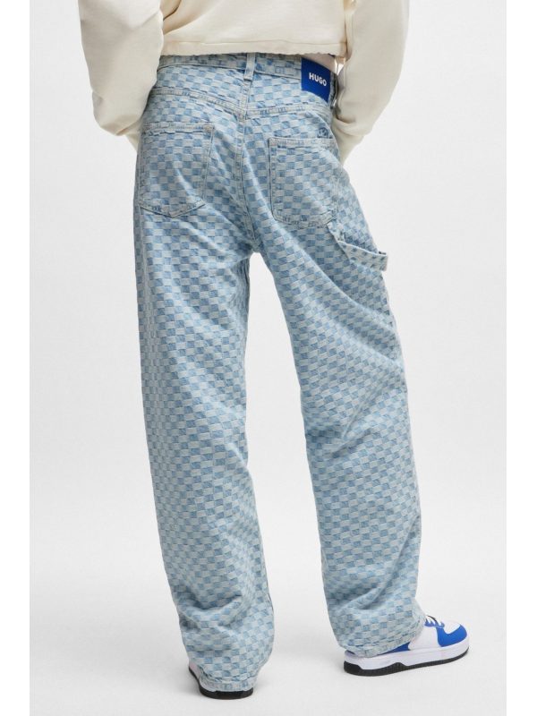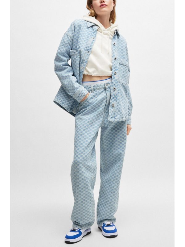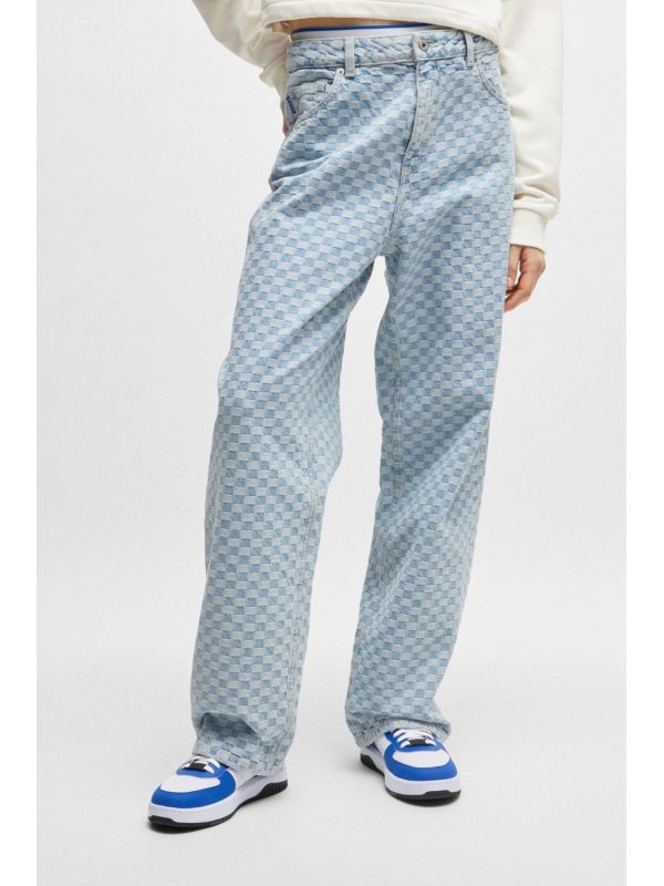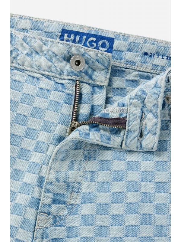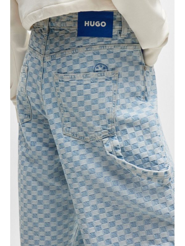 HUGO BLUE ΠΑΝΤΕΛΟΝΙ JEANS GETARA_B WIDE LEG CHECK ΑΝΟΙΧΤΟ ΜΠΛΕΣΥΝΘΕΣΗ: 100% ΒΑΜΒΑΚΙ100% COTTON