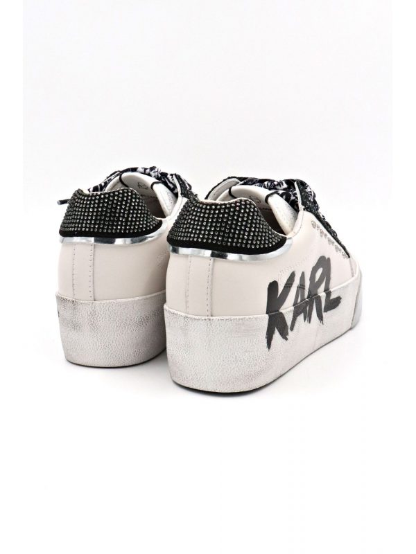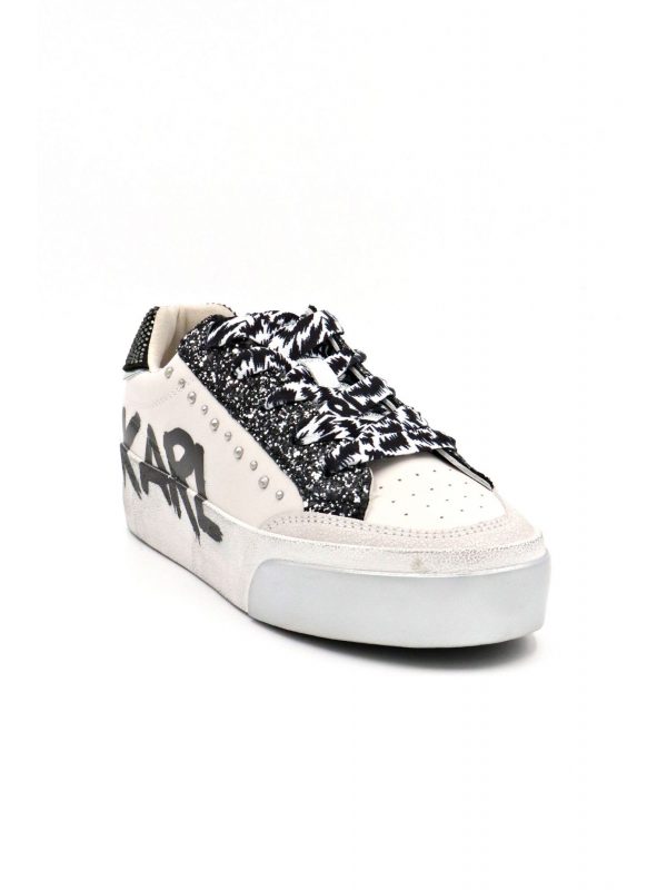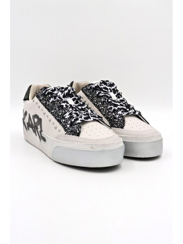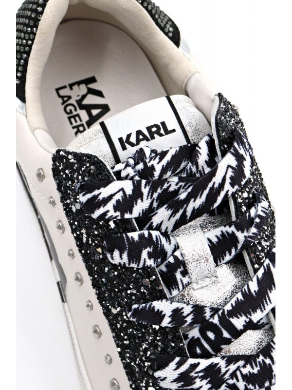 KARL LAGERFELD ΠΑΠΟΥΤΣΙΑ SNEAKERS TΡΟΥΞ ΑΣΗΜΙ ΣΤΡΑΣ SKOOL MAX LOGO ΛΕΥΚΟ/ΜΑΥΡΟ /ΑΣΗΜΙ