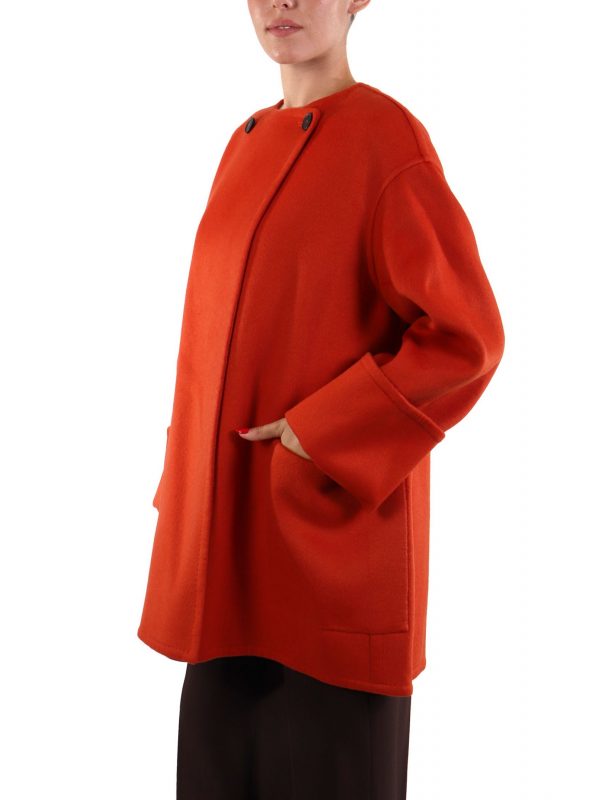 LIVIANA CONTI ΠΑΛΤΟ ΛΑΙΜΟΚΟΨΗ ΣΤΑΥΡΩΤΟ ΣΚΟΥΡΟ ΠΟΡΤΟΚΑΛΙΣΥΝΘΕΣΗ: 100% ΜΑΛΛΙ100% WOOL