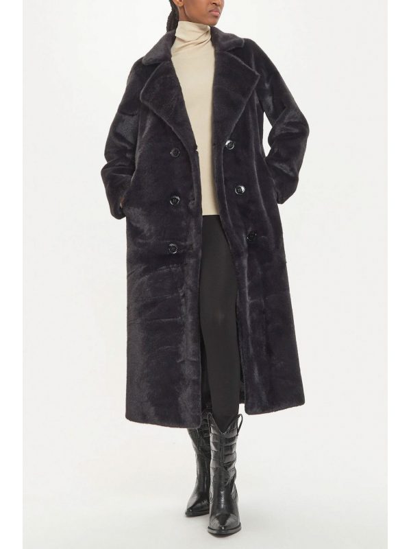 MICHAEL KORS ΠΑΛΤΟ FAUX FUR ΜΑΚΡΥ ΣΚΟΥΡΟ ΜΠΛΕMICHAEL KORS ΠΑΛΤΟ FAUX FUR ΜΑΚΡΥ ΣΚΟΥΡΟ ΜΠΛΕ