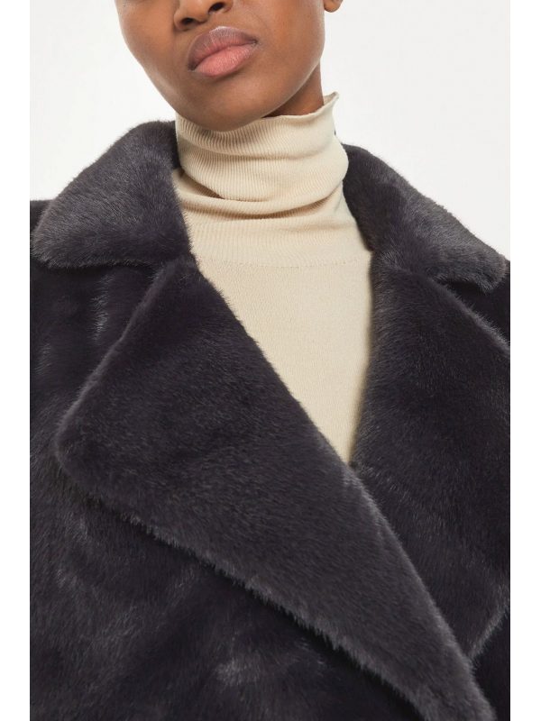 MICHAEL KORS ΠΑΛΤΟ FAUX FUR ΜΑΚΡΥ ΣΚΟΥΡΟ ΜΠΛΕ