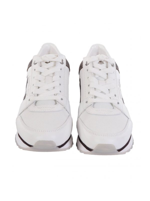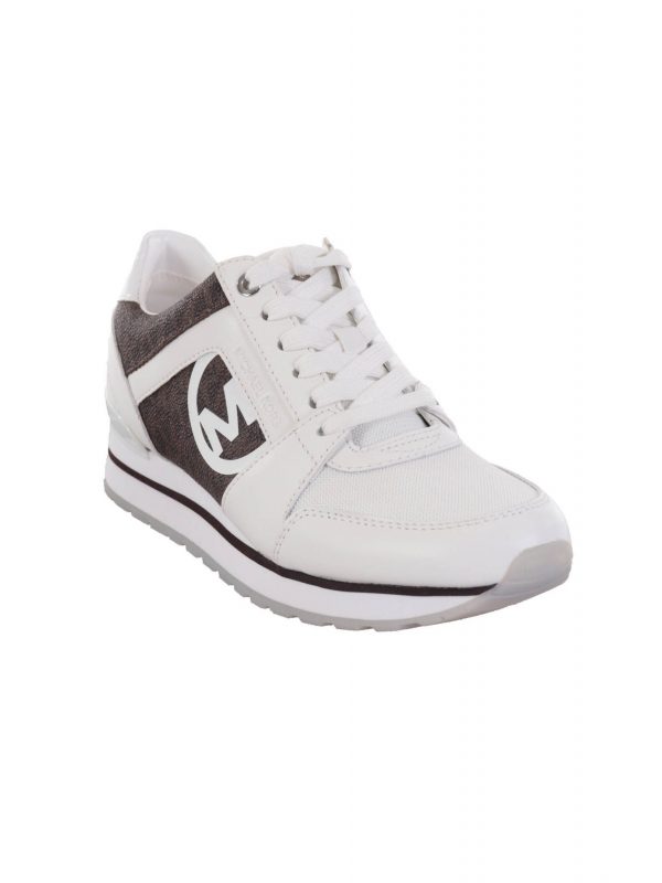 MICHAEL KORS ΠΑΠΟΥΤΣΙΑ SNEAKERS BILLIE TRAINER ΛΕΥΚΟ/ΚΑΦΕ ΣΕ ΣΥΝΘΕΣΗ ΔΕΡΜΑ ΚΑΙ ΥΨΟΣ ΣΟΛΑΣ 2.5cm