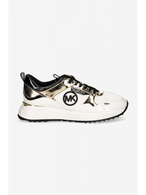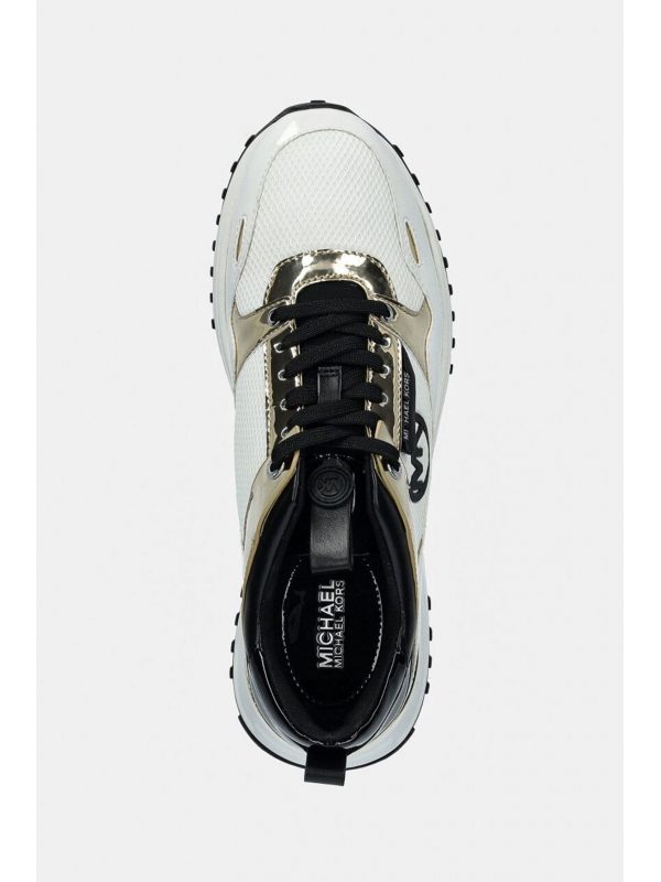 MICHAEL KORS ΠΑΠΟΥΤΣΙΑ SNEAKERS THEO TRAINER LOGO ΜΕΤΑΛΛΙΚΑ ΧΡΩΜΑΤΑ ΛΕΥΚΟME ΣΥΝΘΕΣΗ ΥΦΑΣΜΑ ΚΑΙ ΑΛΛΑ ΥΛΙΚΑ ΥΨΟΣ ΣΟΛΑΣ 4,5 CM