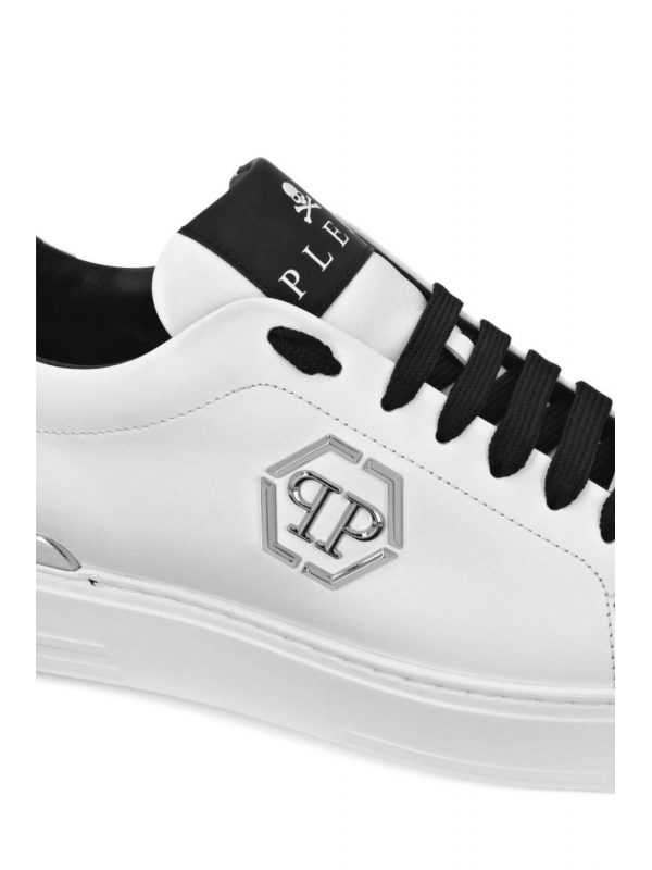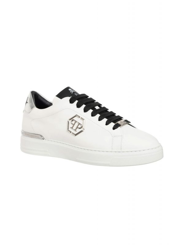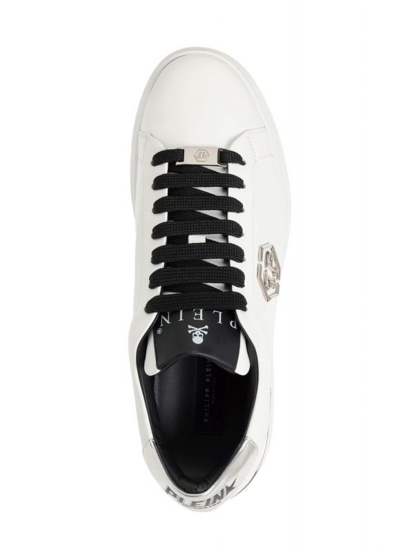 PHILIPP PLEIN ΠΑΠΟΥΤΣΙΑ SNEAKERS LO-TOP LOGO ΜΕΤΑΛΛΙΚΟ HEXAGON ΛΕΥΚΟ-ΜΑΥΡΟ